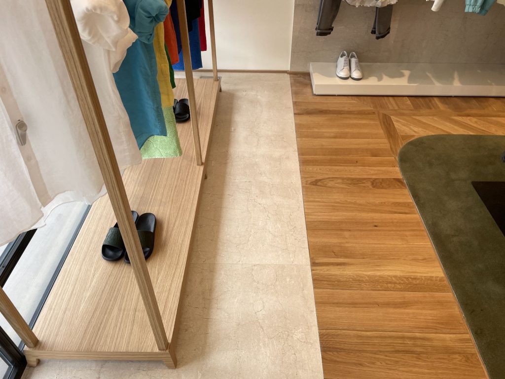 – Floor, exterior and interior wall coverings with Imperial Beige marble.