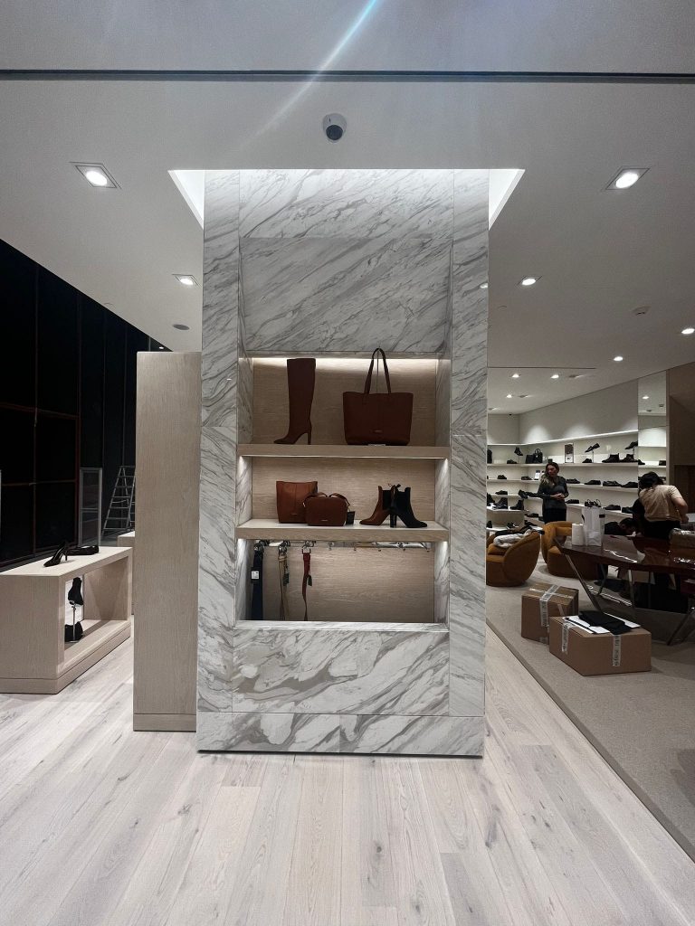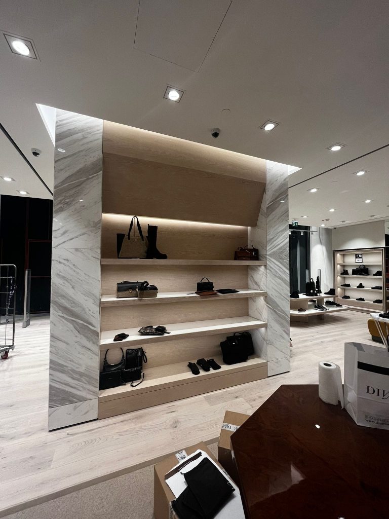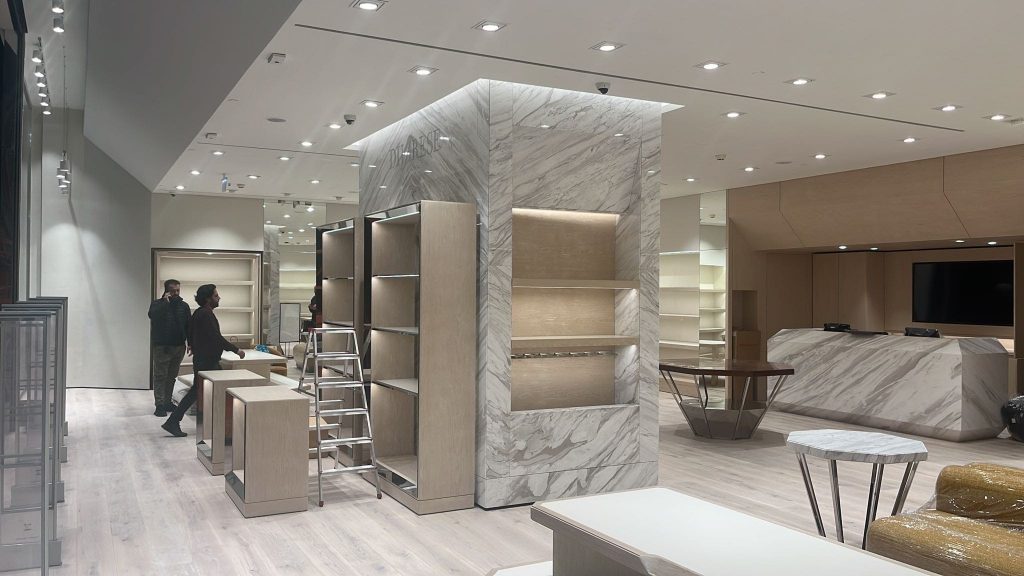 – Interior wall coverings, cashier desk and interior furniture coffe etable tops with Petra marble.