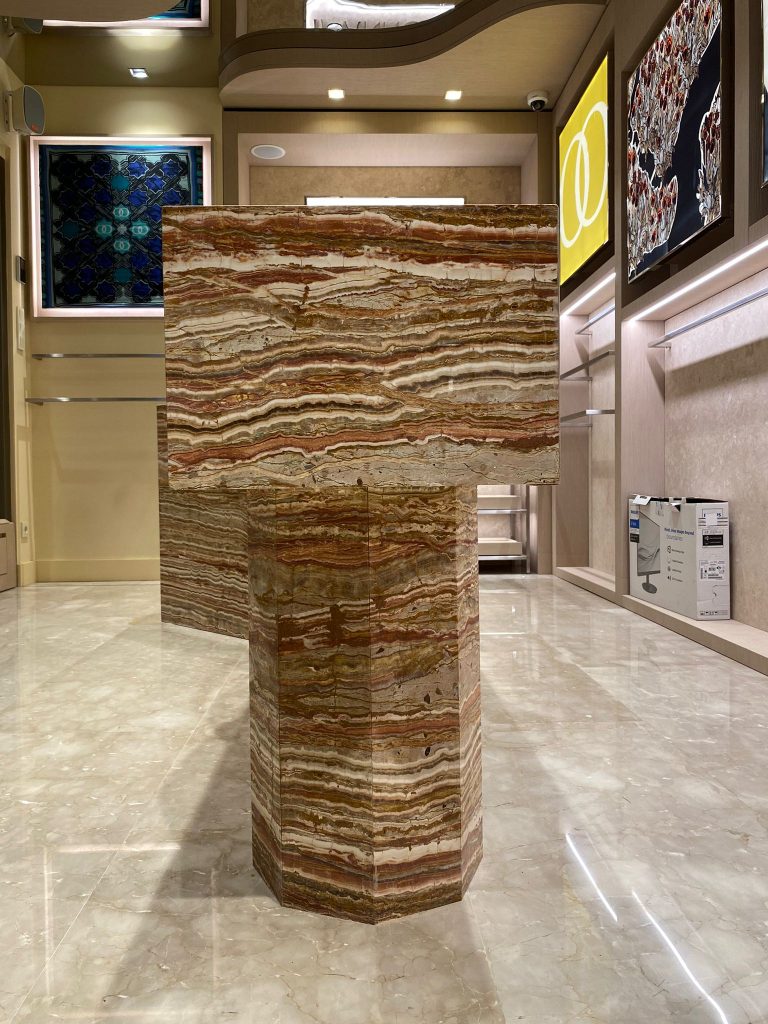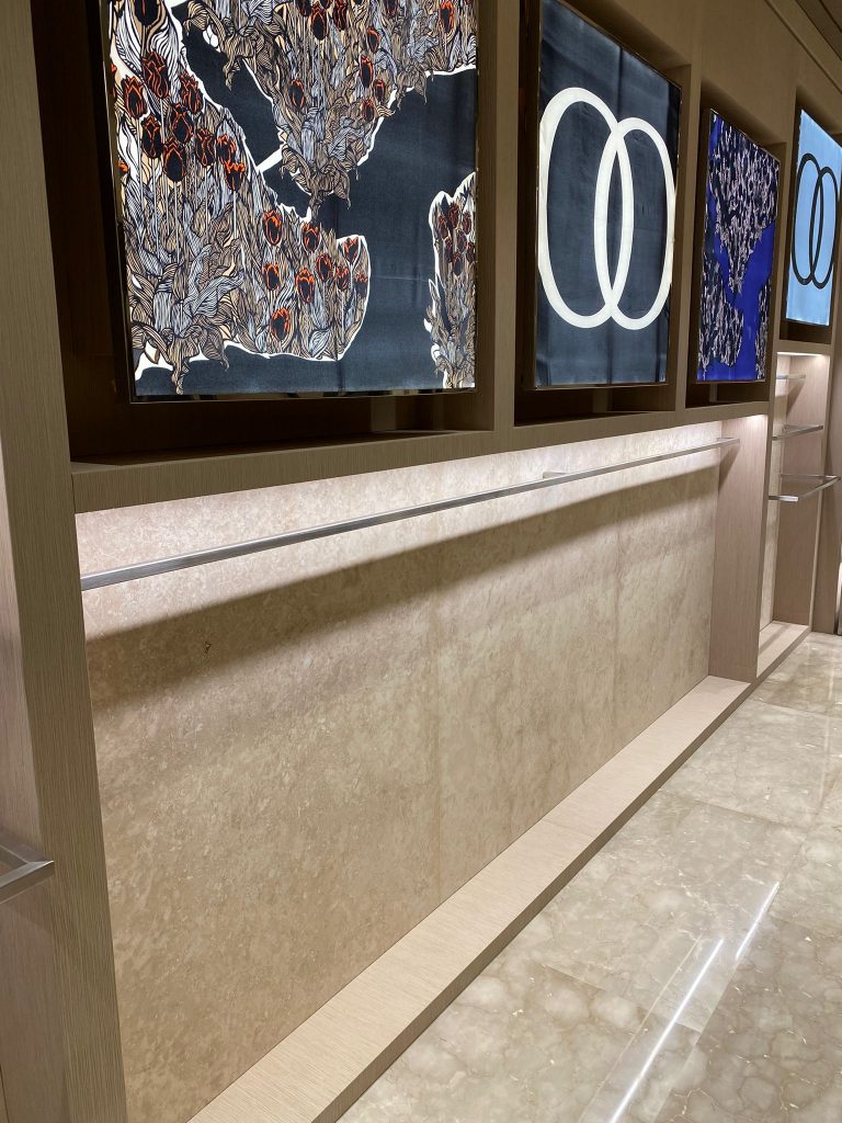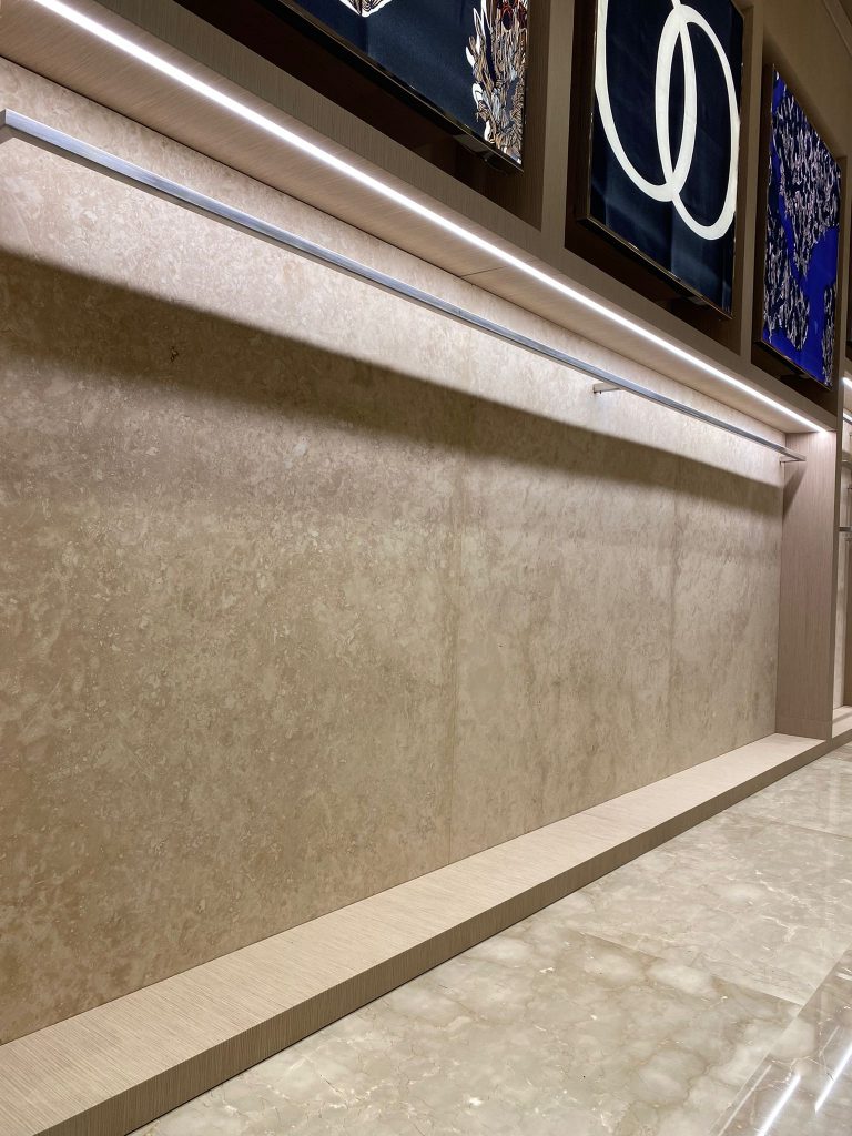 – Interior wall coverings with Exra Light Ivory Travertine.