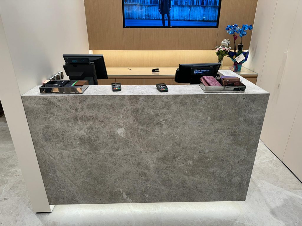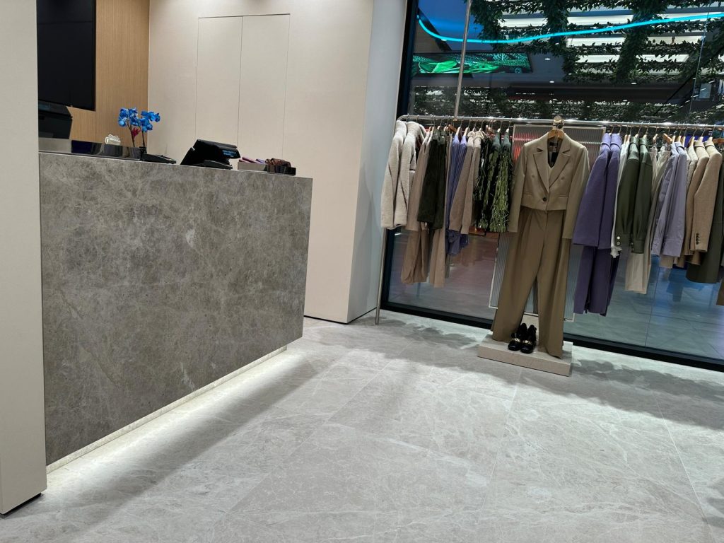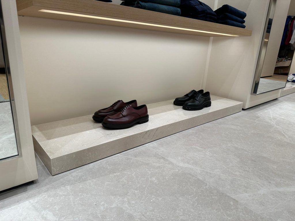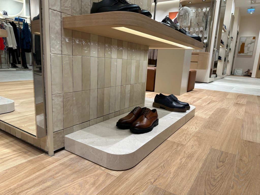 – 34 pieces of product stands with Imperial Beige marble and Honey onyx.