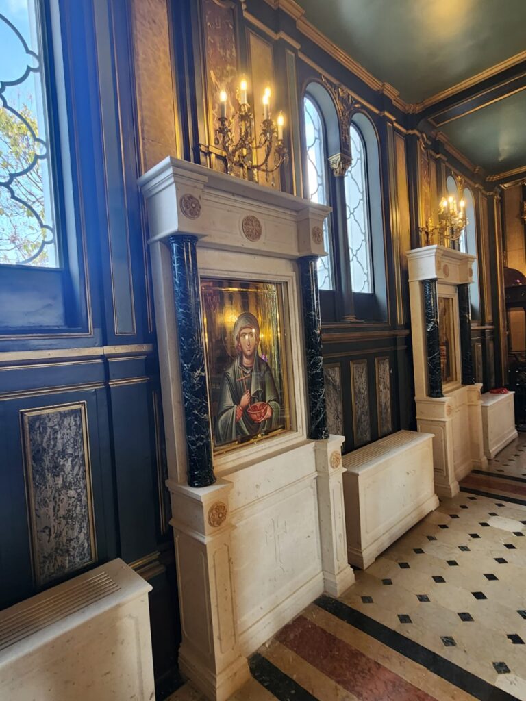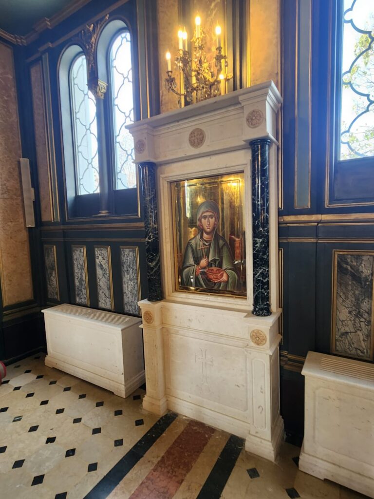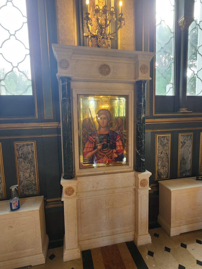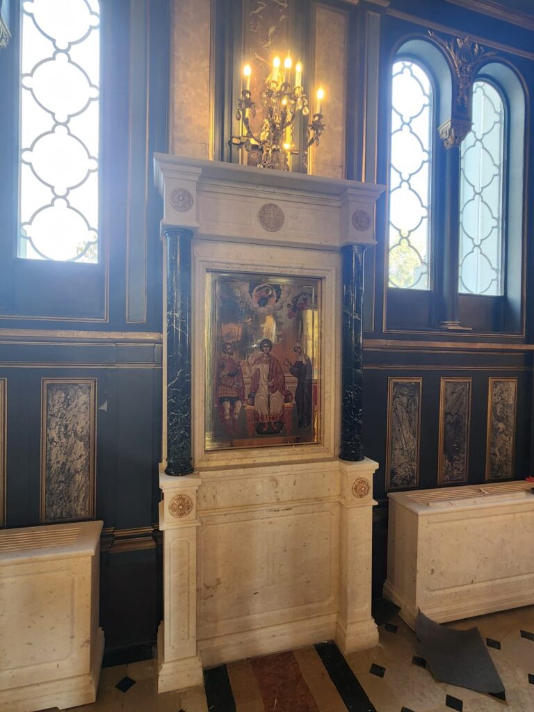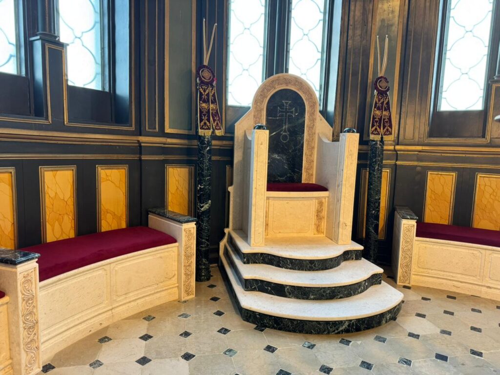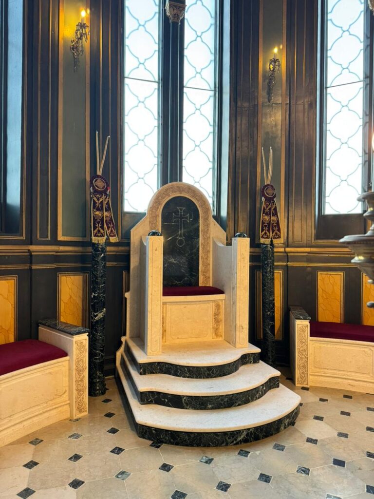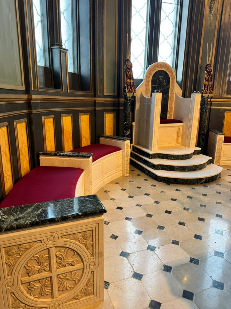 Marble altar and step installations with Greek Beige and Green marbles.