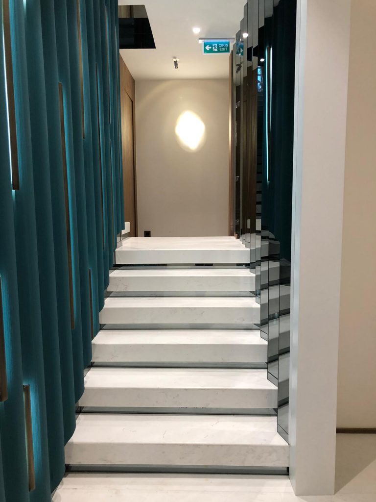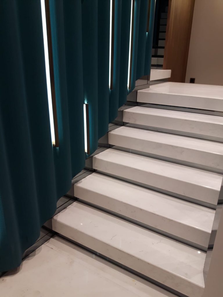– Stairs, hallway, office and watch repair floors with Petra marble.